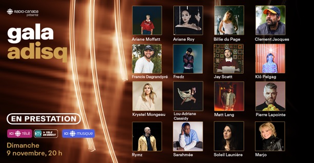 Le talent musical d’ici brillera sur les écrans le dimanche 9 novembre à l’occasion du Gala de l’Adisq, diffusé à 20 h sur ICI TÉLÉ, ICI TOU.TV, Radio-Canada.ca/adisq et aussi sur ICI MUSIQUE et Radio-Canada OHdio.