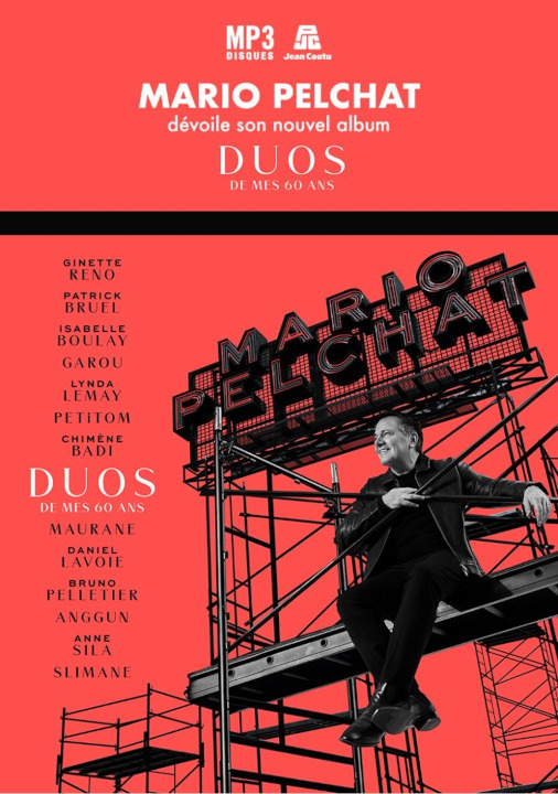 Au tournant de sa soixantaine, Mario Pelchat souhaitait offrir à son public un cadeau exceptionnel : un tout nouvel album disponible dès aujourd’hui, sous l’étiquette MP3, intitulé Duos de mes 60 ans.